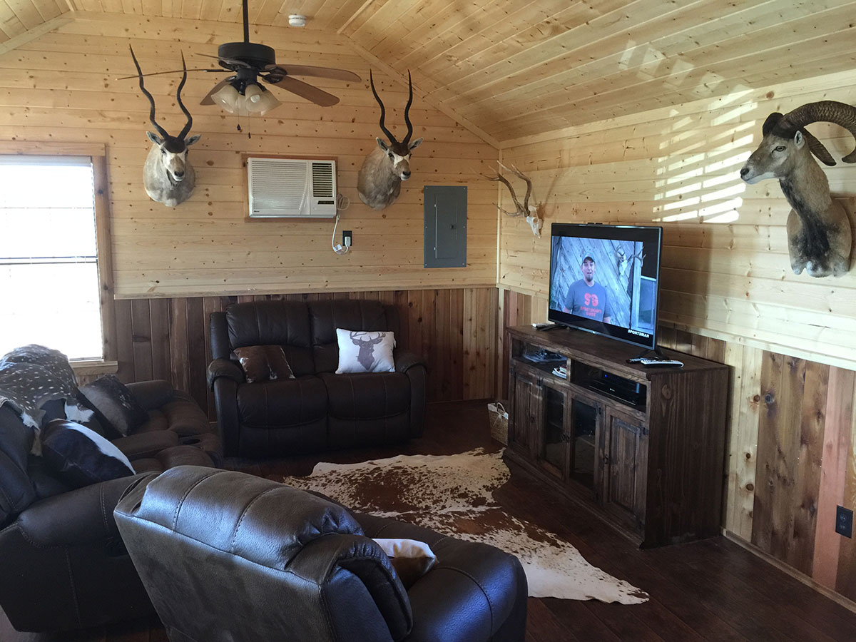 With three guest cabins that can comfortably accommodate up to 14 hunters at a time, these cabins are fully-furnished and climate-controlled with private bathrooms, showers, and satellite TV.